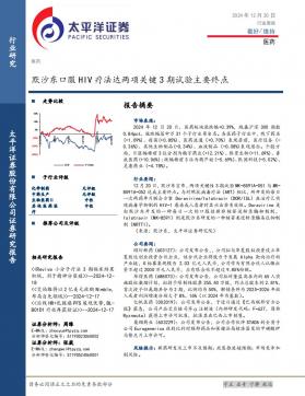 [医药]2024-12-23-太平洋-医药行业周报:默沙东口服HIV疗法达两项关键3期试验主要终点-3页(银创产业通www.chanyetong.net)
