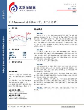 [医药]2024-12-23-太平洋-医药行业周报:礼来Donanemab在华获批上市,用于治疗AD-3页(银创产业通www.chanyetong.net)