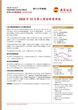 [医药]2024-12-24-西南证券-2024年12月第三周创新药周报-18页(银创产业通www.chanyetong.net)