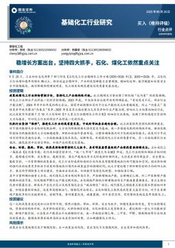 [化工]2025-09-28-国金证券-基础化工行业研究:稳增长方案出台,坚持四大抓手,石化、煤化工依然重点关注-3页(银创产业通www.chanyetong.net)