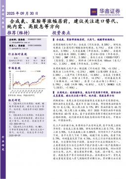 [化工]2025-09-30-华鑫证券-合成氨、苯胺等涨幅居前,建议关注进口替代、纯内需、高股息等方向-34页(银创产业通www.chanyetong.net)