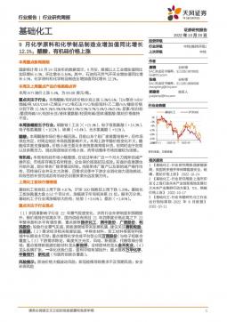 [化工]2022-11-01-天风证券-基础化工行业研究周报:9月化学原料和化学制品制造业增加值同比增长12.1%,醋酸、有机硅价格上涨-20页