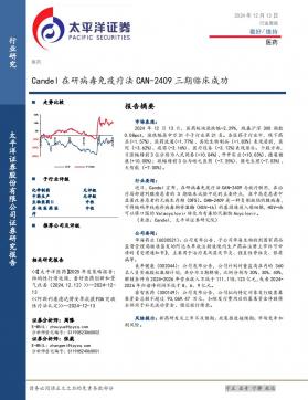 [医药]2024-12-16-太平洋-医药行业周报:Candel在研病毒免疫疗法CAN-2409三期临床成功-3页(银创产业通www.chanyetong.net)