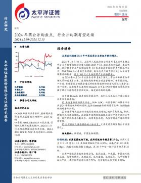 [医药]2024-12-16-太平洋-医药行业周报:2024年药企并购盘点,行业并购潮有望延续-16页(银创产业通www.chanyetong.net)