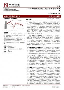 [汽车零部件]2024-08-29-中原证券-汽车行业月报:以旧换新效果显现,关注华为合作新进展-22页(银创产业通www.chanyetong.net)(银创产业通www.chanyetong.net)
