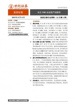 [医药]2025-10-13-世纪证券-医药生物行业周报(10月第2周):关注ESMO会议国产创新药-8页(银创产业通www.chanyetong.net)