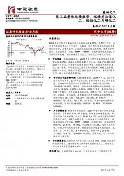[化工]2024-05-17-中原证券-基础化工行业月报:化工品整体延续涨势,继续关注煤化工、轻烃化工与磷化工-17页(银创产业通www.chanyetong.net)