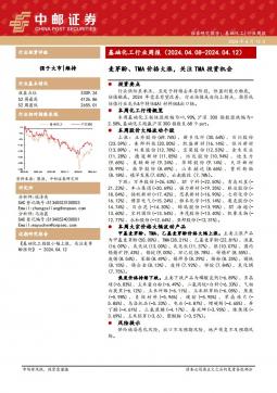 [化工]2024-04-15-太平洋-基础化工行业周报:TMA供需偏紧关注度提升,相关产品价格上行-30页(银创产业通www.chanyetong.net)