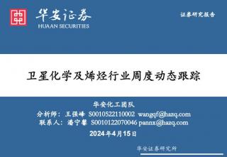 [化工]2024-04-15-华安证券-卫星化学及烯烃行业周度动态跟踪-33页(银创产业通www.chanyetong.net)