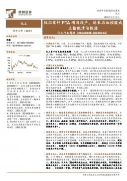 [化工]2024-04-15-德邦证券-化工行业周报:仪征化纤PTA项目投产,延长石油控股成立榆能清洁能源-25页(银创产业通www.chanyetong.net)