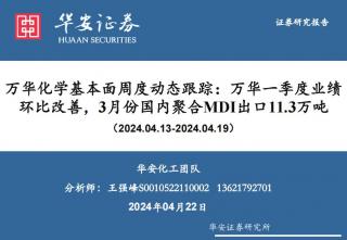 [化工]2024-04-23-华安证券-基础化工:万华化学基本面周度动态跟踪:万华一季度业绩环比改善,3月份国内聚合MDI出口11.3万吨-32页(银创产业通www.chanyetong.net)