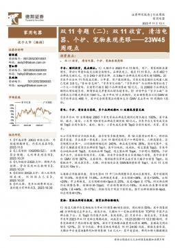 [家电家居]2023-11-14-德邦证券-家用电器23W45周观点:双11专题(二):双11收官,清洁电器、个护、宠物表现亮眼-22页(银创产业通www.chanyetong.net)(银创产业通www.chanyetong.net)