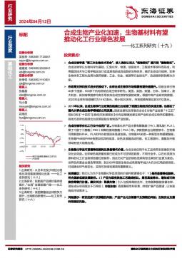[生物医药]2024-04-12-东海证券-化工系列研究(十九):合成生物产业化加速,生物基材料有望推动化工行业绿色发展-19页(银创产业通www.chanyetong.net)(银创产业通www.chanyetong.net)