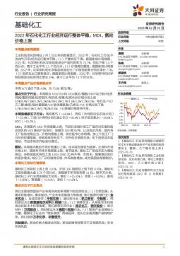 [化工]2023-02-06-天风证券-基础化工行业研究周报:2022年石化化工行业经济运行整体平稳,MDI、氨纶价格上涨-20页(银创产业通www.chanyetong.net)