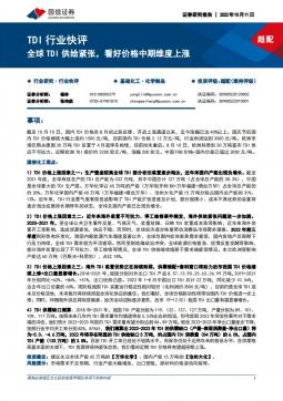 [化工]2022-10-11-国信证券-基础化工:TDI行业快评-全球TDI供给紧张,看好价格中期维度上涨-13页(银创产业通www.chanyetong.net)