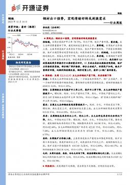 [金属]2023-12-11-开源证券-钢铁行业周报:钢材出口强势,宏观情绪好转或刺激需求-15页(银创产业通www.chanyetong.net)