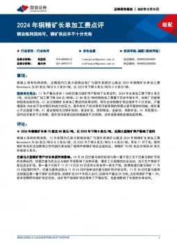 [金属]2023-12-11-国信证券-2024年铜精矿长单加工费点评:铜冶炼利润尚可,铜矿供应并不十分充裕-5页(银创产业通www.chanyetong.net)