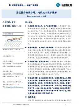 [轻工]2025-11-17-大同证券-造纸行业周报:包装纸提价+库存收缩,造纸板块复苏动能强化-9页(银创产业通www.chanyetong.net)