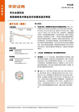 [金属]2024-04-15-平安证券-有色金属行业周报:美联储降息对黄金定价权重或逐步降低-15页(银创产业通www.chanyetong.net)