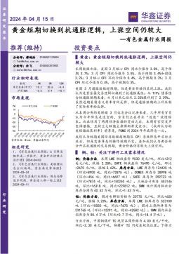 [金属]2024-04-15-华鑫证券-有色金属行业周报:黄金短期切换到抗通胀逻辑,上涨空间仍较大-19页(银创产业通www.chanyetong.net)