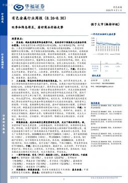 [金属]2024-09-01-华福证券-有色金属行业周报:旺季和降息将至,看好商品价格走势-15页(银创产业通www.chanyetong.net)