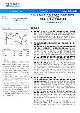[大数据]2024-05-06-国海证券-汽车行业周报:周动态:多车企公布4月销量情况,特斯拉通过汽车数据处理4项安全要求检测 周专题:大中客出口市场梳理与展望-21页(银创产业通www.chanyetong.net)