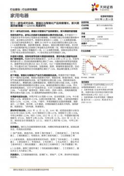 [家电家居]2022-11-15-天风证券-家用电器22W46周度研究:双十一家电成交总结:高端化与智能化产品持续增长,新兴渠道贡献增量-14页(银创产业通www.chanyetong.net)(银创产业通www.chanyetong.net)