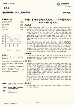 [家电家居]2022-11-21-国金证券-家电行业研究W46周观点:专题:家电估值处历史底部,11月外资持股回升-18页(银创产业通www.chanyetong.net)(银创产业通www.chanyetong.net)