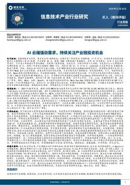 [信息技术]2024-11-18-国金证券-信息技术产业行业研究:AI云端强劲需求,持续关注产业链投资机会-21页(银创产业通www.chanyetong.net)(银创产业通www.chanyetong.net)