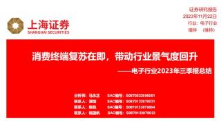 [消费电子]2023-11-23-上海证券-电子行业2023年三季报总结:消费终端复苏在即,带动行业景气度回升-22页(银创产业通www.chanyetong.net)(银创产业通www.chanyetong.net)