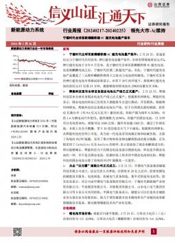 [锂电]2024-02-27-山西证券-新能源动力系统行业周报:宁德时代全球首款磷酸铁锂4C超充电池量产装车-4页(银创产业通www.chanyetong.net)(银创产业通www.chanyetong.net)
