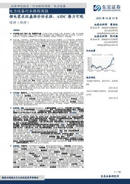 [电池]2025-10-19-东吴证券-电力设备行业跟踪周报:锂电需求旺盛涨价诉求强、AIDC潜力可观-52页(银创产业通www.chanyetong.net)