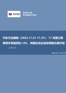 [智能驾驶]2022-11-27-信达证券-汽车行业跟踪:乘用车零售同比+8%,特斯拉完全自动驾驶北美开放-21页(银创产业通www.chanyetong.net)
