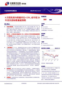 [通用设备]2024-05-15-中国银河-机械设备行业周报:4月挖机国内销量同比+13%,动车组24年首次招标数量超预期-12页(银创产业通www.chanyetong.net)