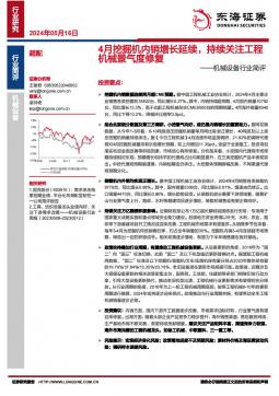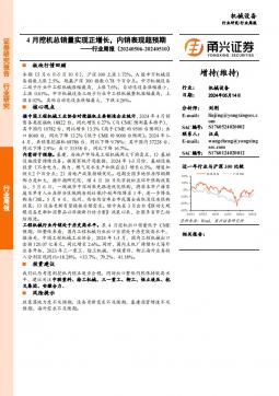 [通用设备]2024-05-16-东海证券-机械设备行业简评:4月挖掘机内销增长延续,持续关注工程机械景气度修复-2页(银创产业通www.chanyetong.net)(银创产业通www.chanyetong.net)