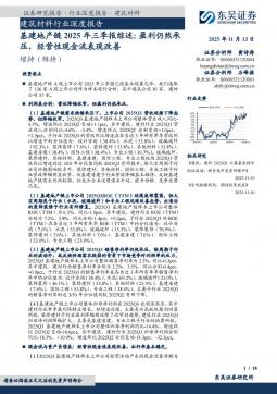[建筑建材]2025-11-13-东吴证券-建筑材料行业深度报告:基建地产链2025年三季报综述:盈利仍然承压,经营性现金流表现改善-18页(银创产业通www.chanyetong.net)