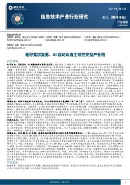 [信息技术]2024-01-15-国金证券-信息技术产业行业研究:看好需求复苏、AI驱动及自主可控受益产业链-20页(银创产业通www.chanyetong.net)(银创产业通www.chanyetong.net)