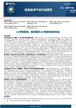 [信息技术]2024-03-18-国金证券-信息技术产业行业研究:AI持续落地,继续看好AI带来的投资机会-20页(银创产业通www.chanyetong.net)(银创产业通www.chanyetong.net)