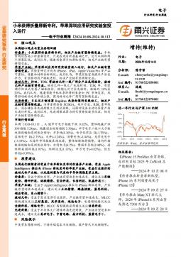 [电子]2024-10-16-甬兴证券-电子行业周报:小米获得折叠屏新专利,苹果深圳应用研究实验室投入运行-14页(银创产业通www.chanyetong.net)(银创产业通www.chanyetong.net)