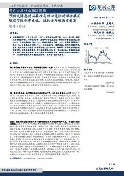[金属]2024-09-15-东吴证券-有色金属行业跟踪周报:预防式降息的必要性与核心通胀的粘性共同驱动实际利率走低,纽约金再破历史新高-18页(银创产业通www.chanyetong.net)