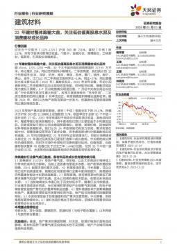 [无机材料]2024-01-01-天风证券-建筑材料行业研究周报:23年建材整体跑输大盘,关注低估值高股息水泥及消费建材成长品种-8页(银创产业通www.chanyetong.net)