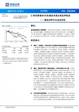 [无机材料]2024-01-08-国海证券-建筑材料行业动态研究:C端消费建材-水泥-建筑央国企股息率较高-6页(银创产业通www.chanyetong.net)