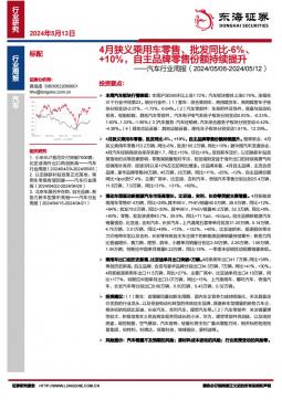 [汽车零部件]2024-05-13-东海证券-汽车行业周报:4月狭义乘用车零售、批发同比-6%、+10%,自主品牌零售份额持续提升-17页(银创产业通www.chanyetong.net)