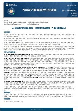 [汽车零部件]2024-05-15-国金证券-汽车及汽车零部件行业研究:4月乘用车销量点评:整体符合预期,5月将迎拐点-8页(银创产业通www.chanyetong.net)(银创产业通www.chanyetong.net)