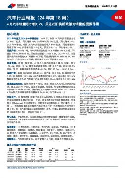 [汽车零部件]2024-05-14-国信证券-汽车行业周报(24年第18周):4月汽车销量同比增长9%,关注以旧换新政策对销量的提振作用-48页(银创产业通www.chanyetong.net)