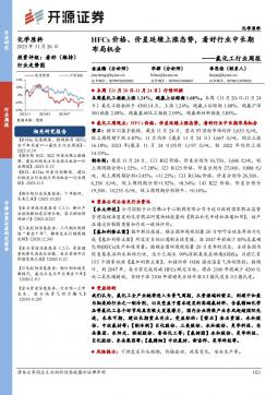 [化工]2023-11-27-开源证券-氟化工行业周报:HFCs价格、价差延续上涨态势,看好行业中长期布局机会-21页(银创产业通www.chanyetong.net)