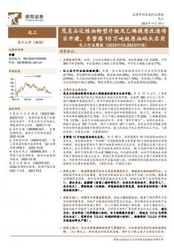 [化工]2023-11-20-德邦证券-化工行业周报:茂名石化炼油转型升级及乙烯提质改造项目开建,东营港10万吨级原油码头启用-24页(银创产业通www.chanyetong.net)