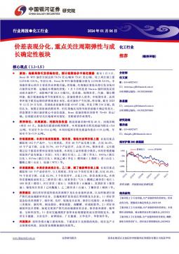 [化工]2024-01-07-中国银河-化工行业周报:价差表现分化,重点关注周期弹性与成长确定性板块-17页(银创产业通www.chanyetong.net)