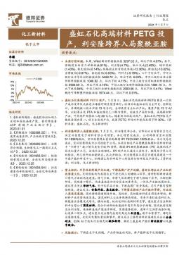 [化工]2024-01-08-德邦证券-化工新材料行业周报:盛虹石化高端材料PETG投产,利安隆跨界入局聚酰亚胺-10页(银创产业通www.chanyetong.net)