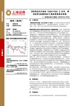 [生物医药]2024-10-22-上海证券-医药生物行业周报:《肥胖症诊疗指南(2024年版)》发布,博瑞医药BGM0504 II期减重数据达预期-2页(银创产业通www.chanyetong.net)